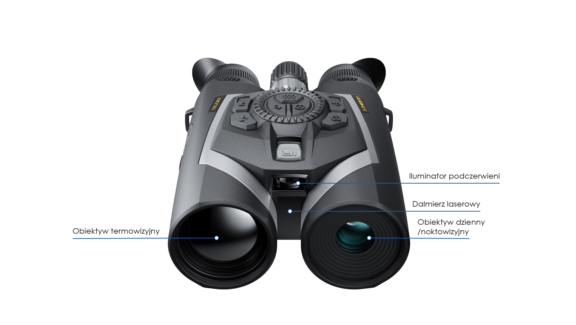 Pulsar Symbion LRF DXT50 jest lornetką multispektralną wyposażoną w dwa niezależne obiektywy i sensory, dzięki czemu oferuje wyjątkowo szczegółowy obraz termowizyjny , noktowizję w rozdzielczości 4K oraz kolorowy obraz dzienny.